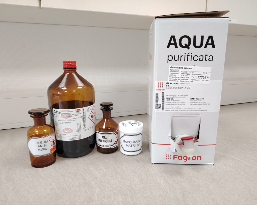 Sternanisöl und Bitterfenchelöl dienen mit einer Menge von 0,023 beziehungsweise 0,022 Gramm in der Rezeptur als Geschmackskorrigens und entfalten in der eingesetzten Dosierung keine therapeutische Wirkung.